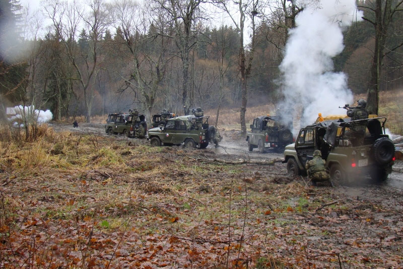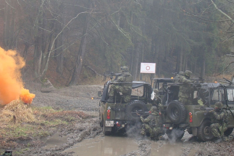 Skupina vojáků, představující nepřátelské ozbrojence, pod vedením instruktora připravila léčky, s nimiž samozřejmě nebyli cvičící kolegové dopředu obeznámeni. Účelem rozehraných situací byla co nejvěrnější simulace nebezpečných situací a těch, které ohrožují životy. Jedním ze základních úkolů vojáků v afghánské provincii Lógar je doprovod a přeprava civilních odborníků provinčního rekonstrukčního týmu a dalších důležitých osob. Právě přeprava chráněné osoby do místa schůzky s představitelem smyšlené obce a návrat zpět na základnu byly námětem ukázek.