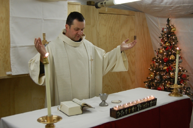 Česká půlnoční mše se konala ve 22.30 hodin místního času v hlavní kapli základny Shank a celebroval ji kaplan kontingentu kapitán Martin Vařeka.
