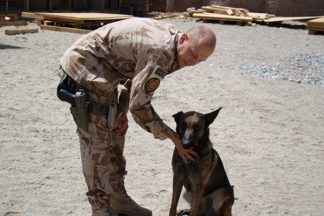 Druhý z psovodů v armádě slouží šest let. Zde v Lógaru má na starosti čtyřletou fenku belgického ovčáka Schainy. Slouží spolu přes rok a v Afghánistánu jsou oba poprvé. Z domova máme za sebou řadu bezpečnostních akcí, říká, ale zkušenost odsud z Lógaru je naprosto výjimečná a domnívám se, že měsíce práce tady se rovnají rokům zkušeností doma.