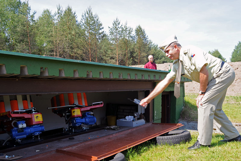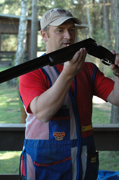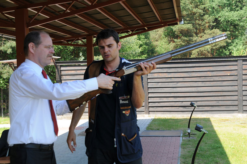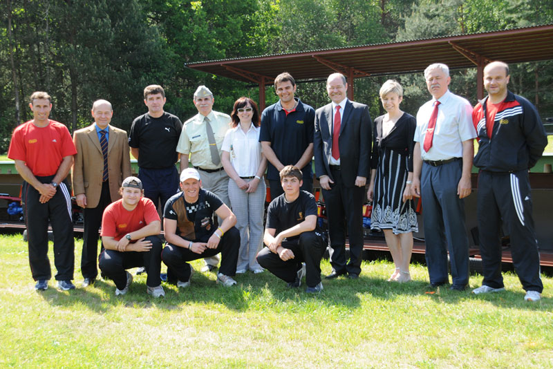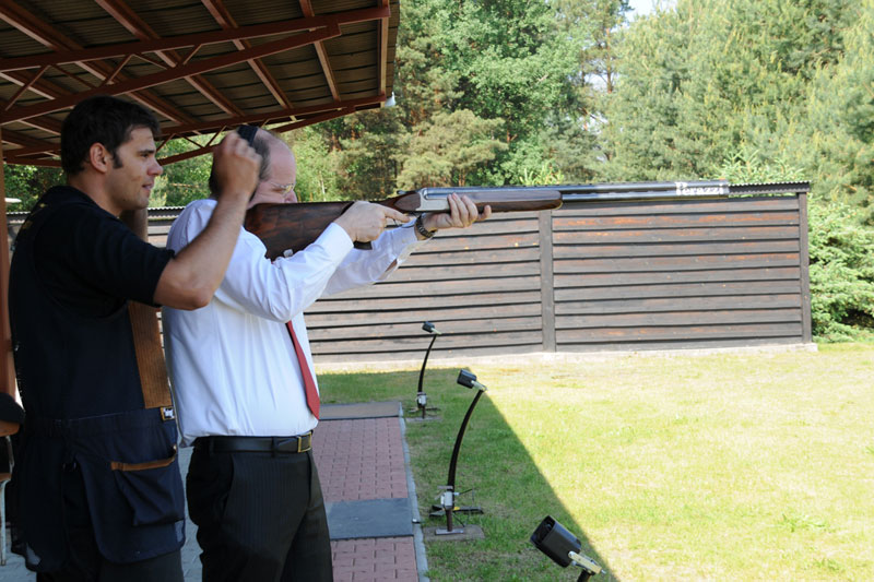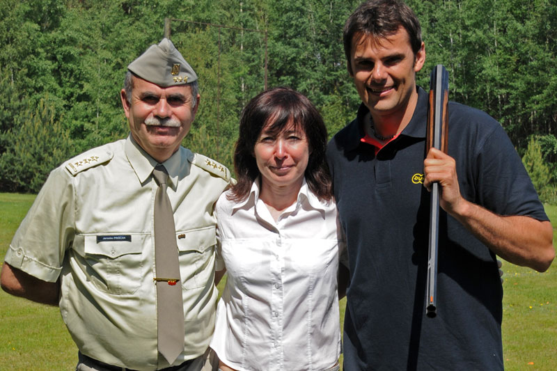 Náš nejlepší traper Kostelecký a trenéři střelecké Dukly všechny přítomné provedli po skeetové a trapové střelnici. David vysvětlil a předvedl střelbu na trap a hosté si mohli zkusit rozstřelit oranžový terč. Po úspěšných zásazích následovala prohlídka konstrukce vrhaček a jejich křest s přáním pro všechny střelce: „Rovné broky“.