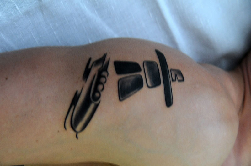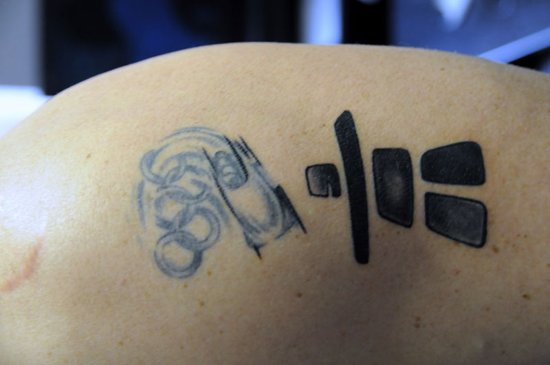 si nechal zkrášlit pravý deltový sval inukshukem a čtyřbobem.