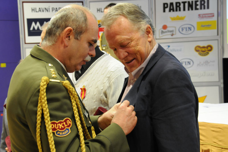 V závěru slavnostního setkání předal za mimořádné sportovní výsledky a osobní podíl spojený s rozvojem armádního vrcholového sportu ředitel ASC DUKLA plukovník Jaroslav Priščák deseti armádním jubilantům Pamětní odznak ASC DUKLA.