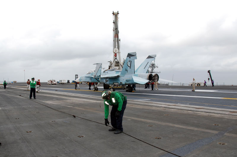 Obsluha letadlové lodi se na rozdíl od jiných bojových útvarů neobléká jen do jednotné khaki uniformy, ale typická je svými různobarevnými skupinkami. Na ohromné palubě letadlové lodi je pak zřejmé, ke kterému útvaru pracovník patří a jaké plní úkoly. Fialové oblečení má například tankovací četa, modrou mají spojaři, posunovači a obsluha výtahů, zelená barva patří obsluze katapultů, záchytného zařízení a naváděcímu personálu helikoptér. Do žluté se oblékají muži, kteří vydávají letounům povely ke startu. Červení pracují s výbušninami, zavěšují výzbroj pod křídla a udržují sklad zbraní. Hnědou barvu nosí piloti a bílou velitelé signalizace, obsluha kyslíkových bomb nebo zdravotníci.