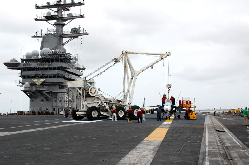 Hlavní údernou silou současných letadlových lodí jsou bitevníky FA-18 E/F SuperHornet, stíhačky FA-18 C/D Hornet a průzkumný a bojový letoun F-14 Tomcat. Radarovou kontrolu nad bojovým prostorem zajišťují průzkumné letouny E-2C Hawkeye se svým typickým radarovým talířem nad trupem. K rušení nepřátelských radarů slouží EA-6B Prowler. Proti ponorkám jsou nasazovány letouny S-3 Viking. K přepravě zásob se používají vrtulníky SH-60 Seahawk. Letadla jsou běžně uložena v hangárech na spodních palubách a na runway se vyvážejí až těsně před startem.