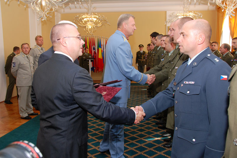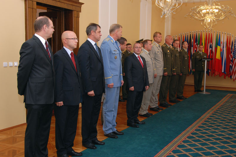 Místopředseda vlády a ministr obrany Martin Barták společně s náčelníkem Generálního štábu AČR generálporučíkem Vlastimilem Pickem předali ve středu 23. září 2009 ocenění za pomoc při povodních.