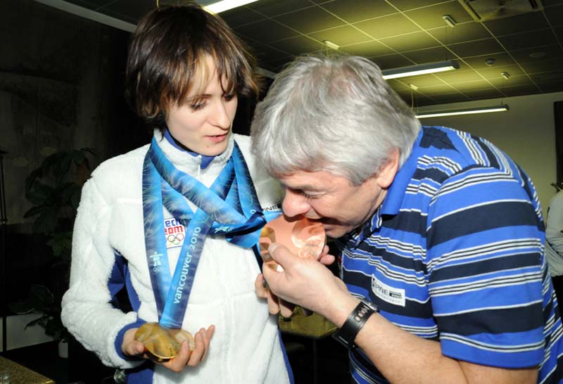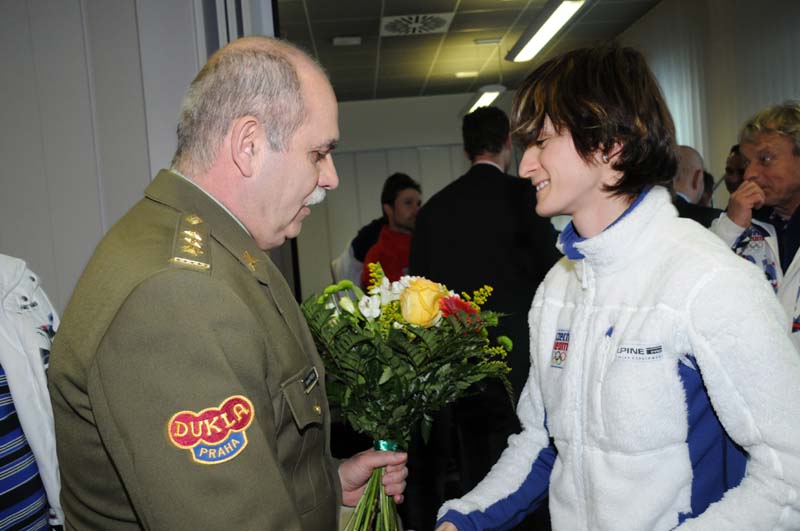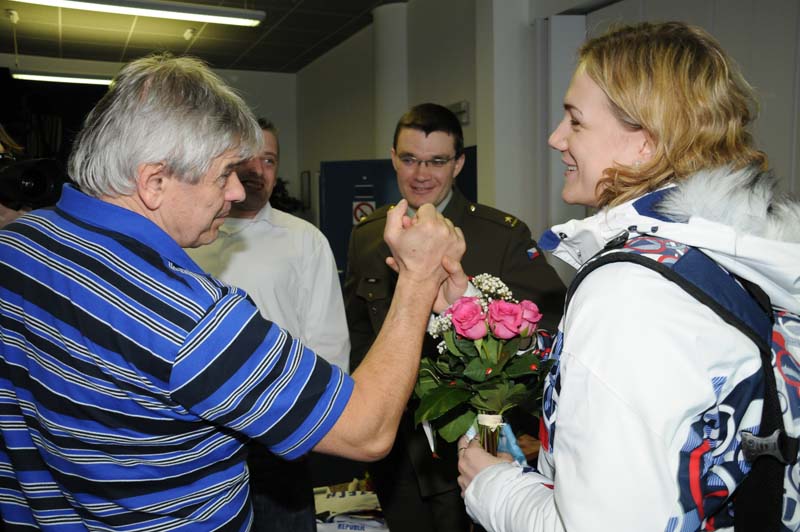 Zlatou Martinu Sáblíkovou přijeli přivítat její nejbližší. Maminka jí předala dárek – přikrývku plnou fotografií od jejích začátků na rychlobruslích až po fantastický hattrick na olympiádě ve Vancouveru. Za armádu přišel pogratulovat medailistům ředitel ASC Dukla plukovník Jaroslav Priščák.