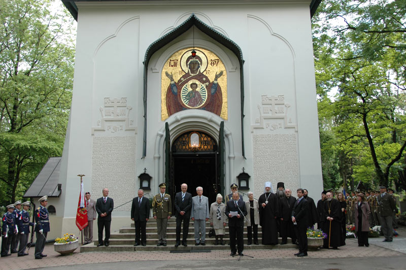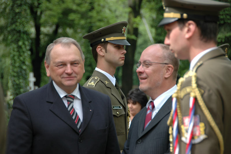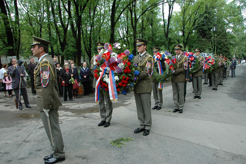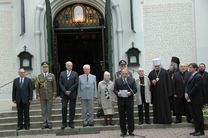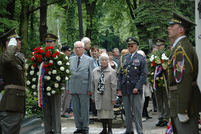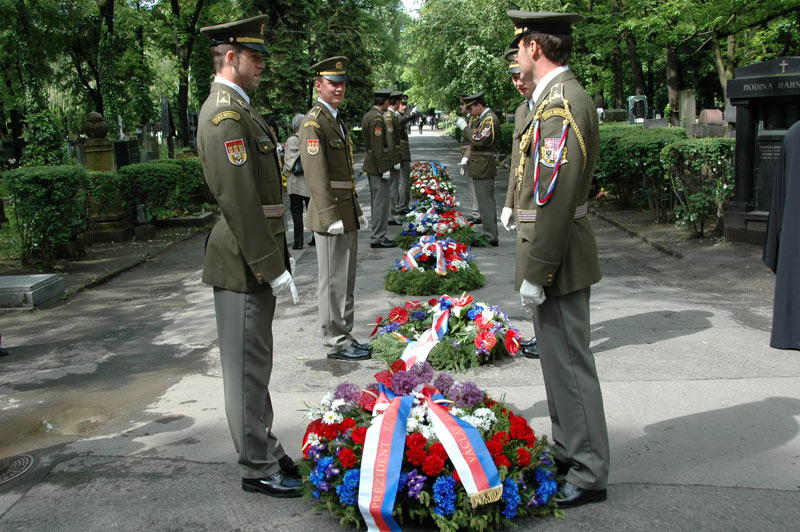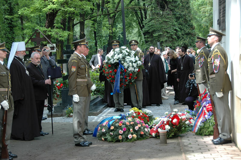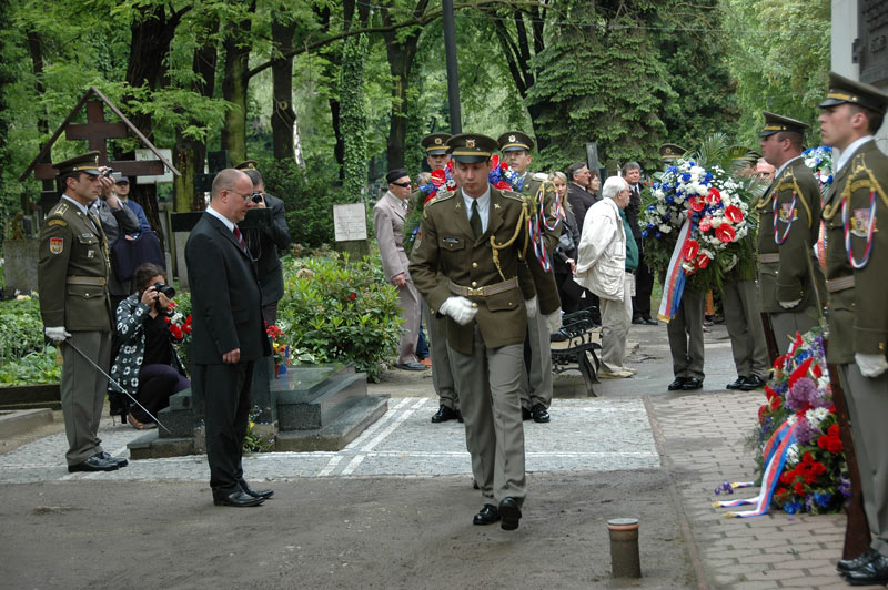Smuteční věnce k pamětní desce u pravoslavného kostelíku na Olšanských hřbitovech položili čelní představitelé státu – místopředsedové obou komor Parlamentu ČR Jiří Šneberger a Jan Kasal.