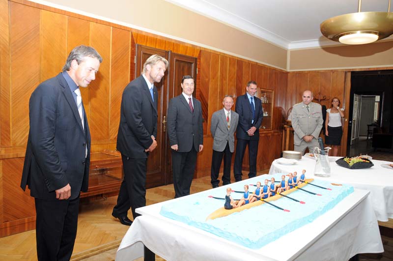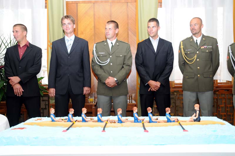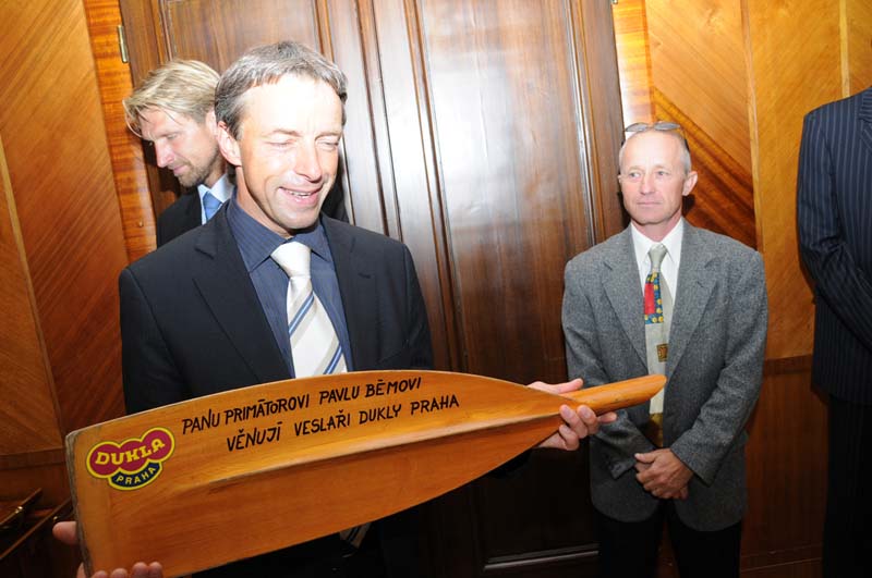 Primátor Bém posádce ve složení - veslovod Karel Neffe, sedma Milan Bruncvík, šestka Michal Horváth, pětka Václav Chalupa, čtyřka Jakub Makovička, trojka David Jirka, dvojka Milan Doleček, háček Jan Gruber, kormidelník Oldřich Hejdůšek - a jejich trenérovi Petru Blechovi, šéftrenérovi ASO veslování Dukla Praha Filipu Koudelovi a řediteli ASC DUKLA plukovníku Jaroslavu Priščákovi poděkoval za reprezentaci města a celé republiky, popřál mnoho sportovních úspěchů na zářijovém mistrovství světa v Poznani.