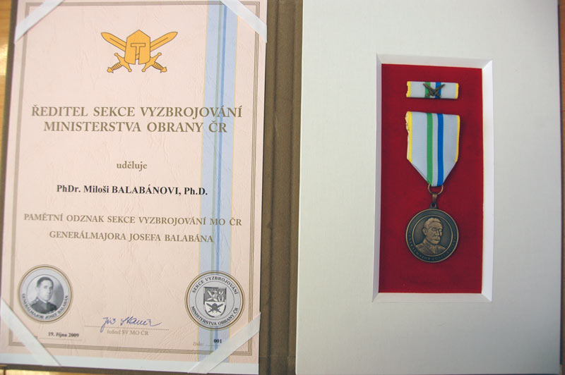 Pamětní odznak s pořadovým číslem 001 byl symbolicky předán ředitelem sekce vyzbrojování Jiřím Staňkem 20. října 2009 vnukovi generála Balabána Miloši Balabánovi.