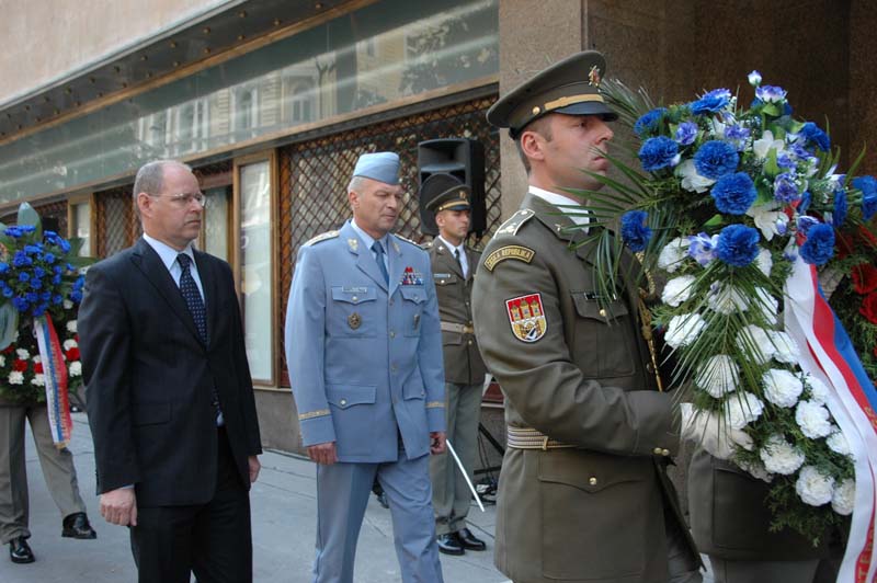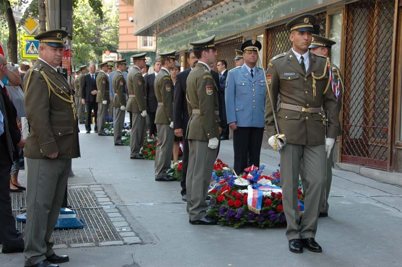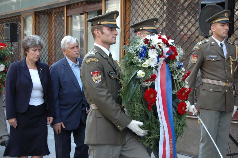 Spolu s ním položili věnce u pamětních desek na budově rozhlasu mimo jiné vedoucí Kanceláře prezidenta republiky Jiří Weigl, předseda Poslanecké sněmovny Miloslav Vlček, místopředsedkyně Senátu Alena Gajdůšková, náměstek ministra obrany Jaroslav Kopřiva, náčelník Generálního štábu Armády České republiky generálporučík Vlastimil Picek a další hosté.