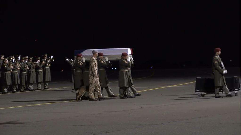 S padlým vojákem se na kbelském letišti rozloučil ministr obrany, prezident České republiky a další činitelé
