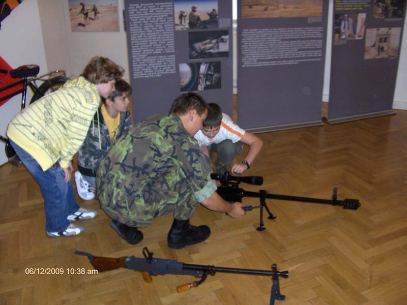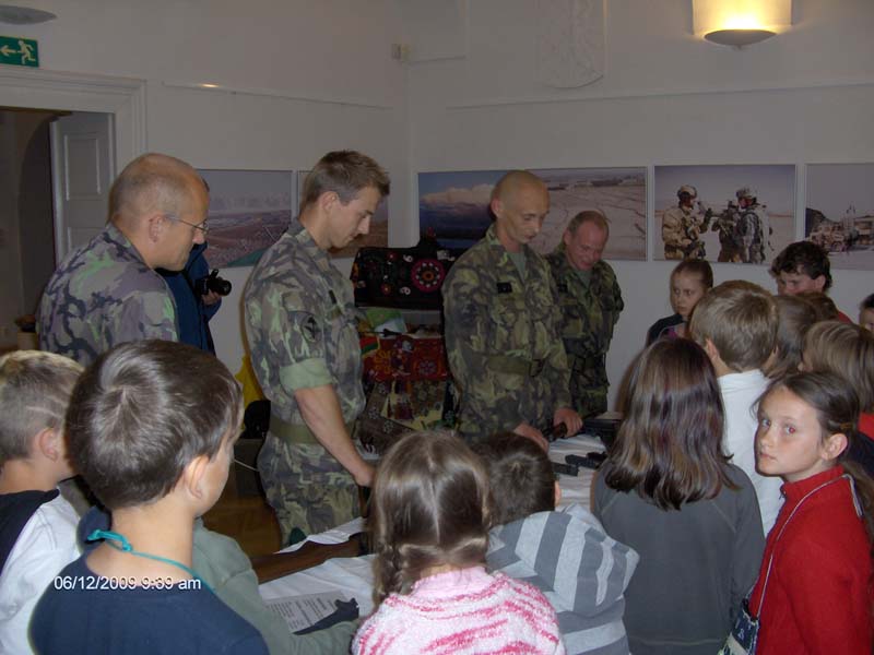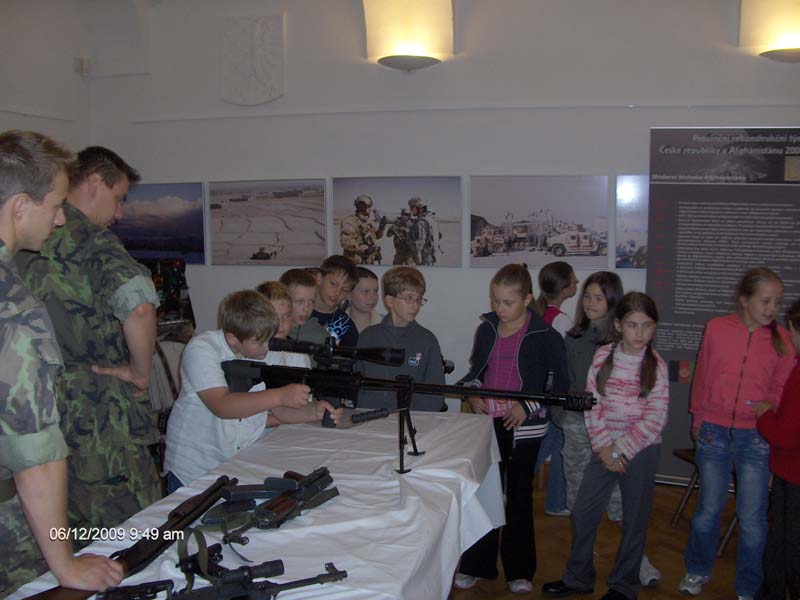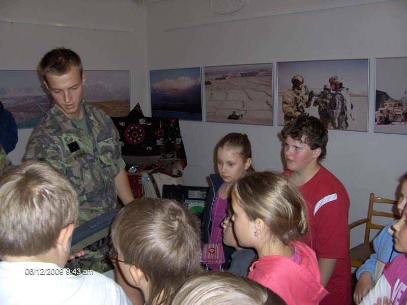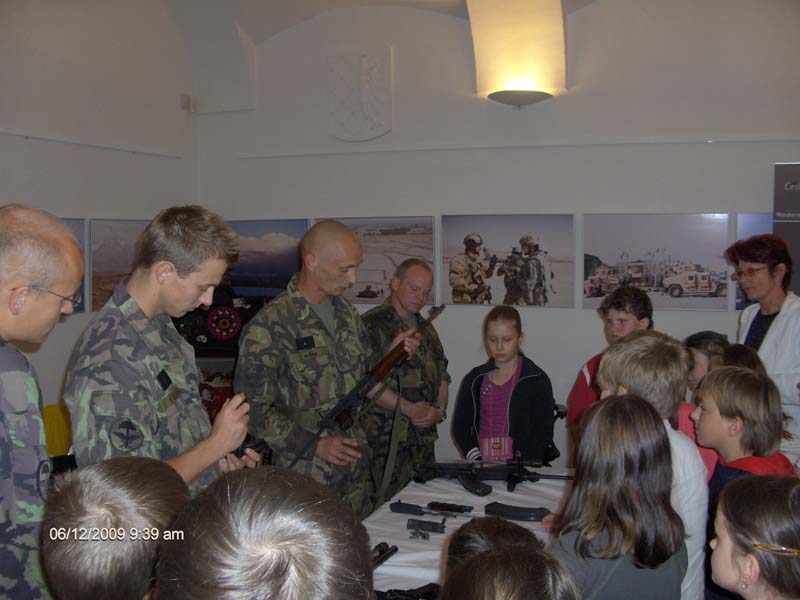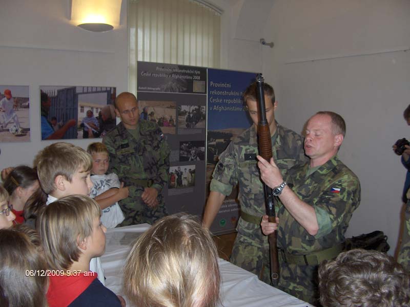 Vojáci z průzkumného praporu se v následné besedě s dětmi podělili o své osobní zkušenosti z nasazení v Afghánistánu. V závěru žáky seznámili s různými typy zbraní. Děti si je mohly osahat a dokonce i vyzkoušet; mohly si skutečnou zbraň složit a rozebrat, což byl pro ně velký zážitek.