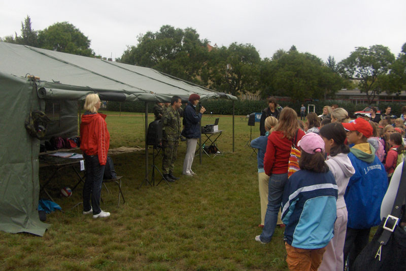 Součástí soutěže byl i doprovodný program, který měl úspěch u soutěžících i pedagogického doprovodu, ve kterém si mohli všichni vyzkoušet různé druhy zbraní, viděli rozbalený padák, zahráli si míčové hry.