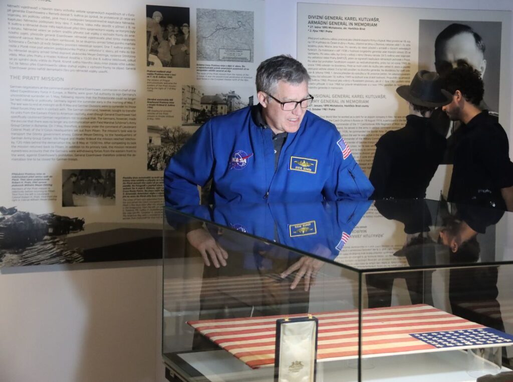 Astronaut NASA se v Armádním muzeu Žižkov podíval na dar jeho předchůdců – vzorky horniny z Měsíce