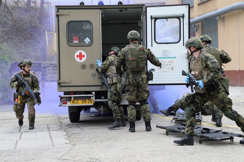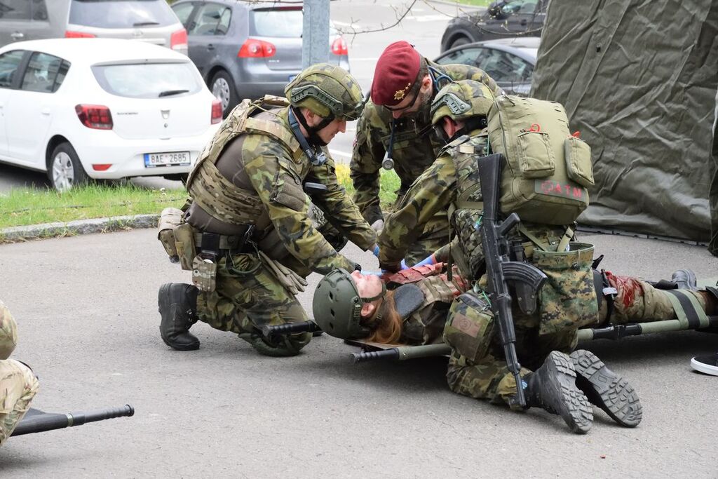 Centrum bojové medicíny trénovalo poskytování neodkladné péče v podmínkách simulovaného útoku