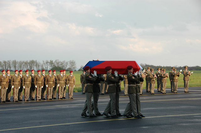 Ze smutečního obřadu, který se uskutečnil 3.5.2008 na letišti ve Kbelích za účasti nejvyšších představitelů resortu obrany 2