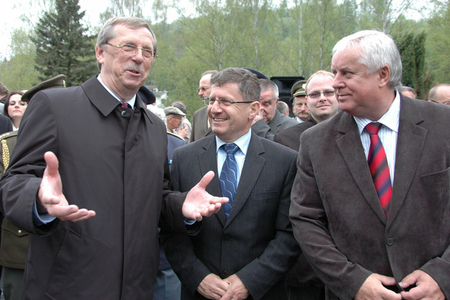 František Padělek, generál Tesařík a plukovník Kaleta po položení věnce k památníku