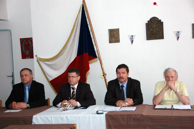 Zleva: Ředitel VÚA Josef Žikeš, náměstek MO František Padělek, předseda ČSOL Pavel Budínský a místopředseda ČSOL Alexander Beer