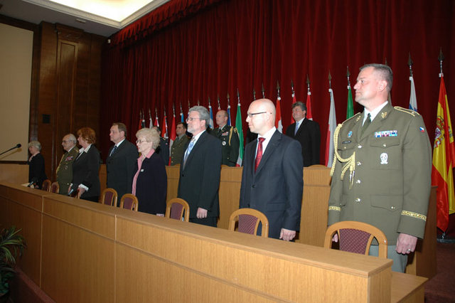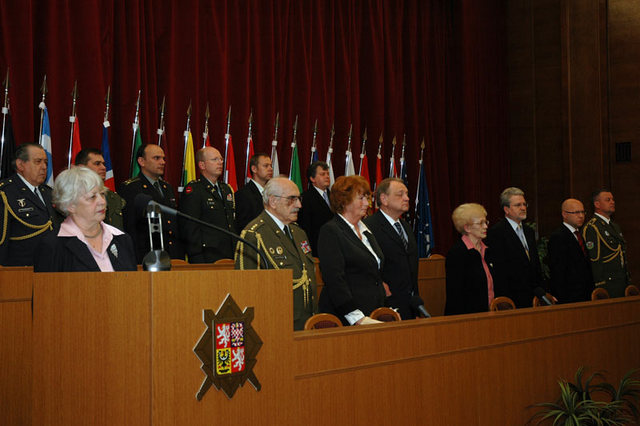 Účastníci slavnostního shromáždění v hlavním sále Ministerstva obrany ČR v Praze 3