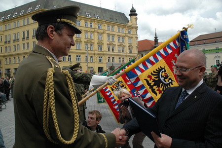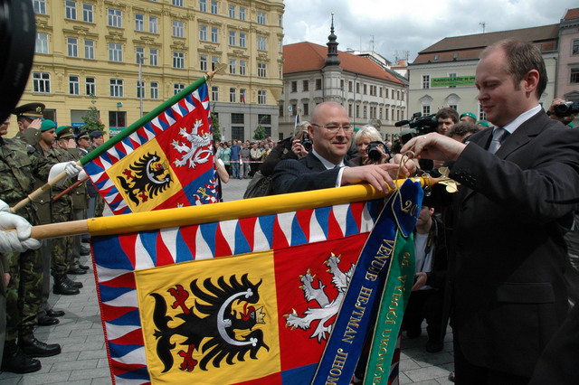Udělování slavnostních stuh Jihomoravského kraje na bojové prapory útvarů