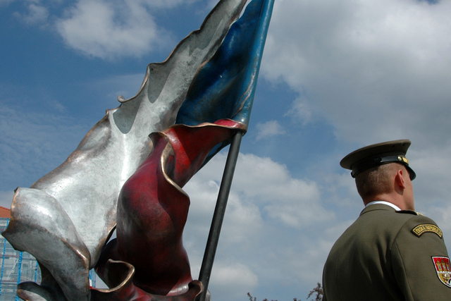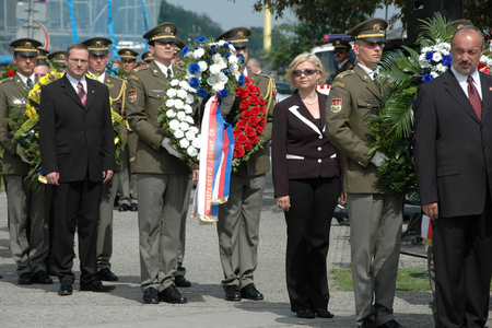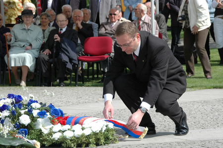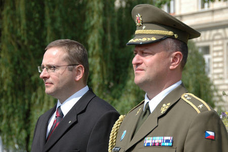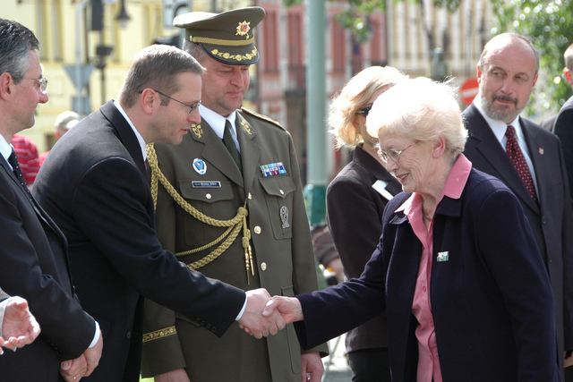 Náměstek ministra obrany Jan Fulík se zdraví s předsedkyní ČSBS Andělou Dvořákovou