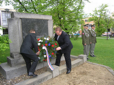 Starosta města Podbořany Radek Reindl a zástupce občanů - kladení věnce k památníku