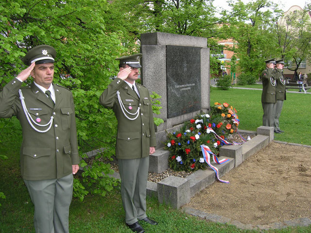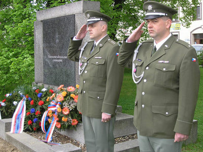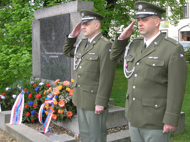 Nrtm. Jiří Petružela a pprap. Pavel Maršík u památníků padlým obětem 2.sv. války