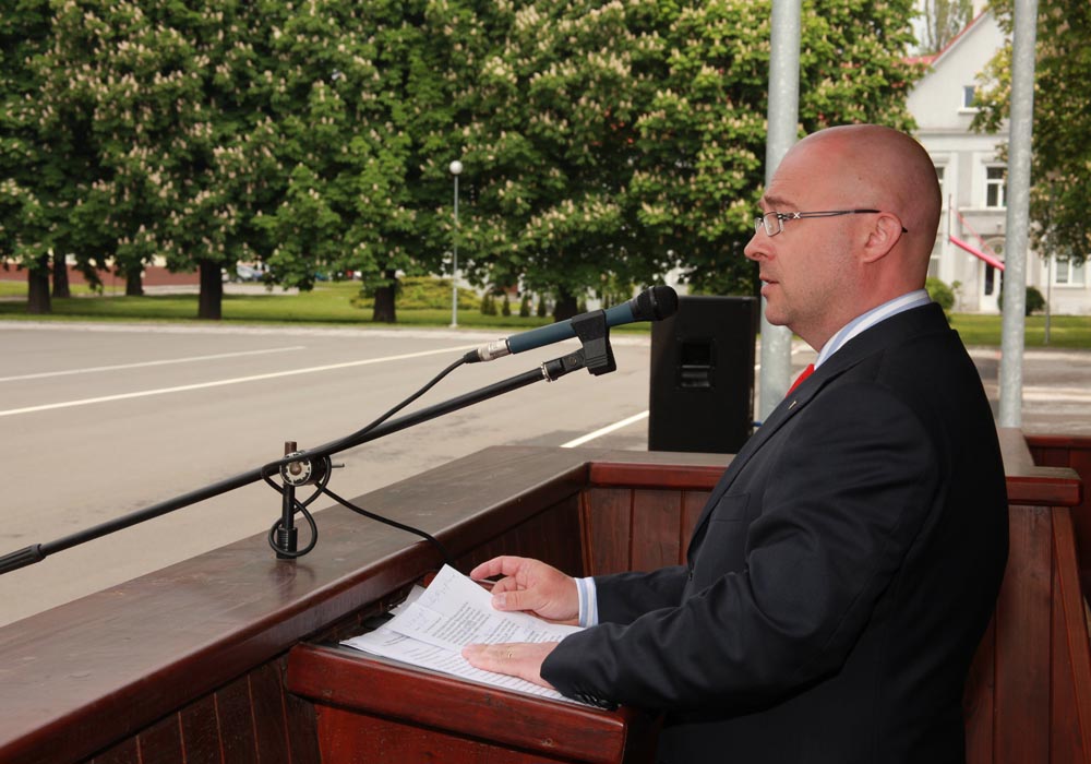 Milan Kovanda předává bojový prapor jednotky do rukou ředitele Vojenského zpravodajství