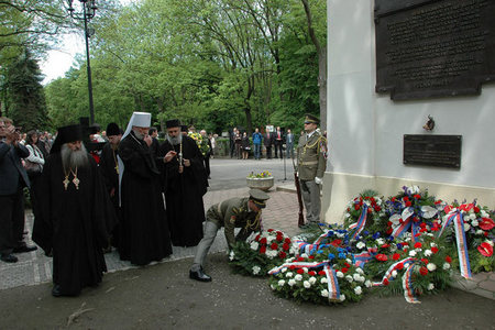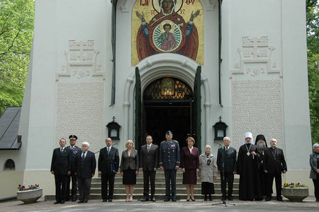 Duchovní pravoslavené církve u pamětní desky obětem gulagů
