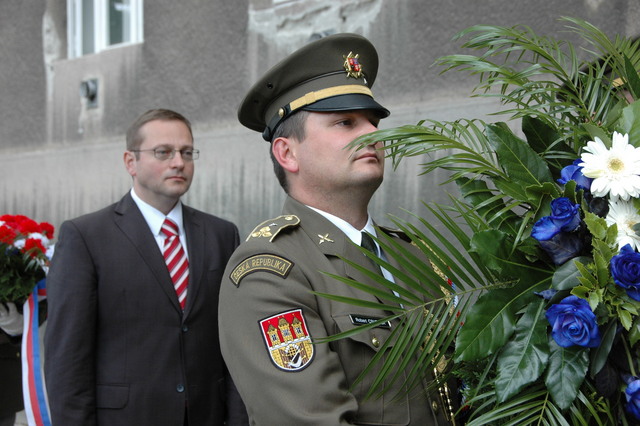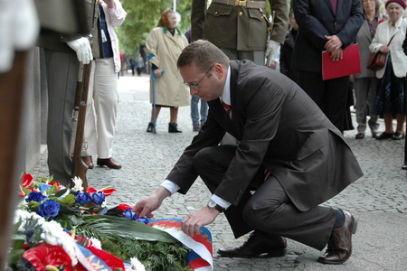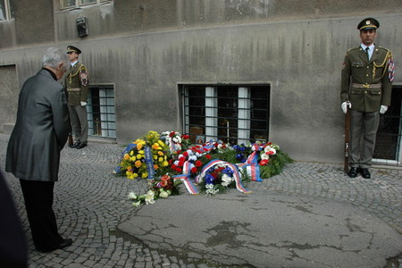 Smuteční věnec Senátu Parlamentu ČR položil jeho místopředseda Petr Pithart