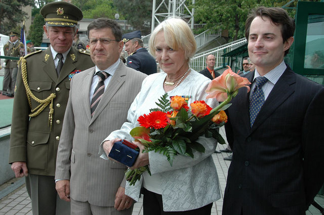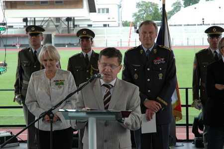 V popředí prezidentka hnutí Na vlastních nohou - Stonožka Běla Gran Jensen a armádní generál Vlastimil Picek