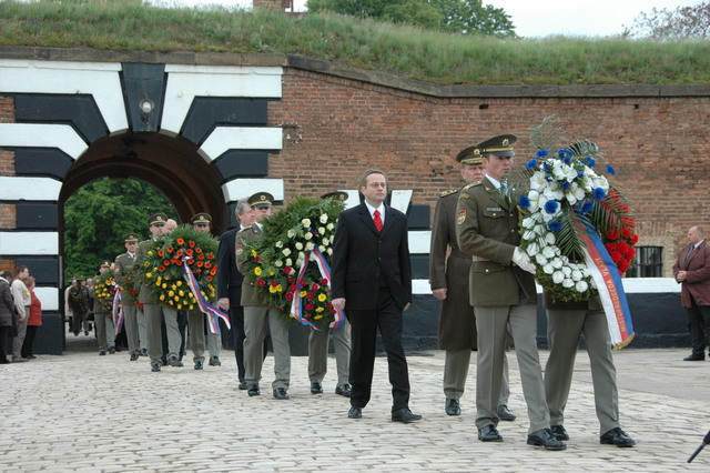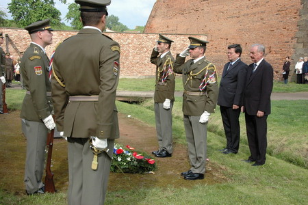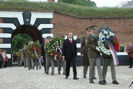 Terezínská tryzna začala kladením věnců na popravišti - předseda Senátu Přemysl Sobotka a senátor Alexandr Vondra