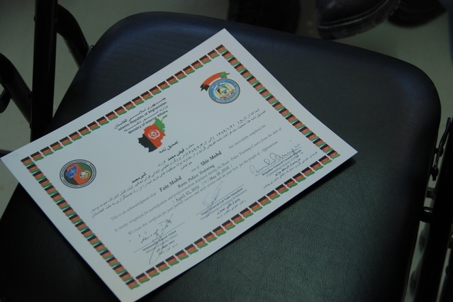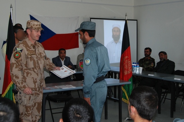 Nový Afghánský Policista Převzal Certifikát Z Rukou Velitele 5. kontingentu 2