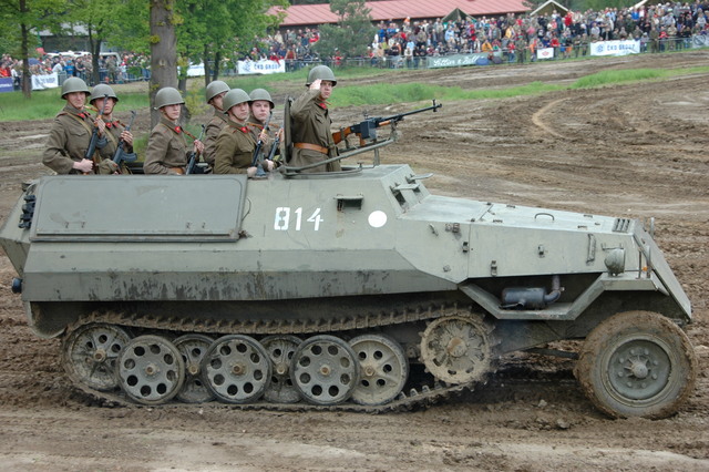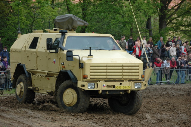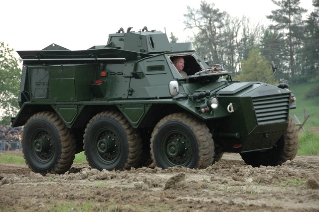 Ministr obrany Martin Barták na britském průzkumném transportéru Humber MK II