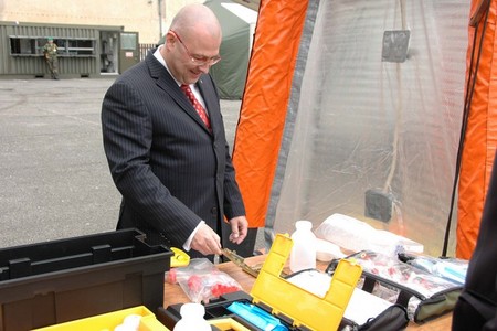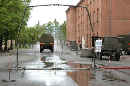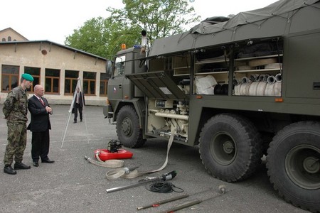 Automobil chemický rozstřikovací slouží k dekontaminaci vozidel, zbraní a osob v polních podmínkách