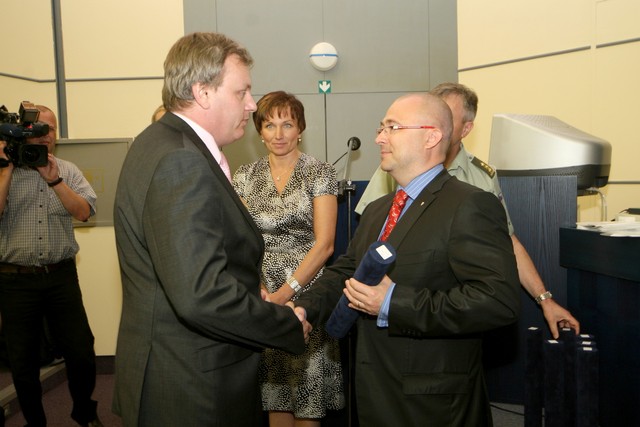 Zastupující ředitel ÚVN plukovník Miroslav Zavoral přebírá certifikát od ministryně zdravotnictví Dany Juráskové