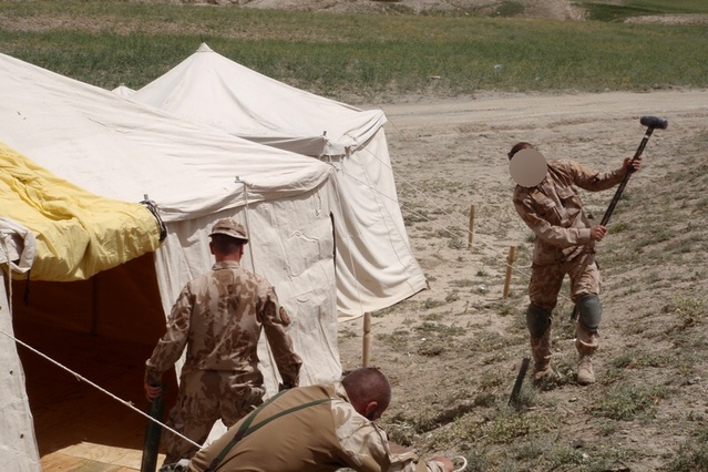 Vojáci českého PRT dělají novou podlahu v kherwarské škole (2)