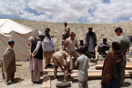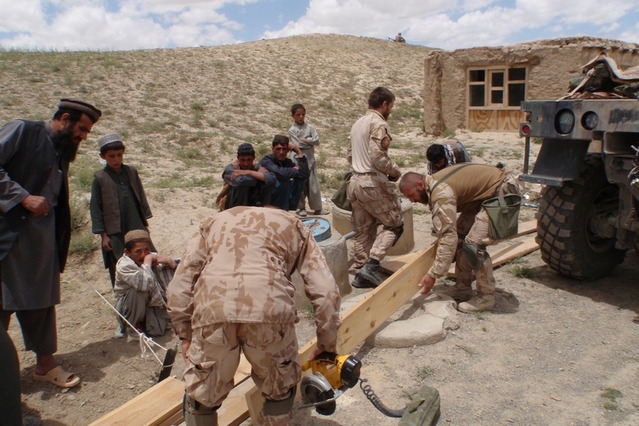Vojáci českého PRT dělají novou podlahu v kherwarské škole (1)
