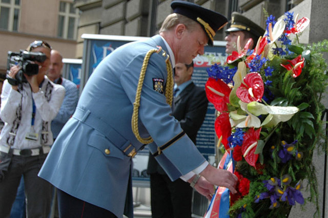 Náměstek ministra obrany František Padělek položil smuteční věnec spolu s generálem Miroslavem Žižkou k pamětní desce na Generálním štábu AČR